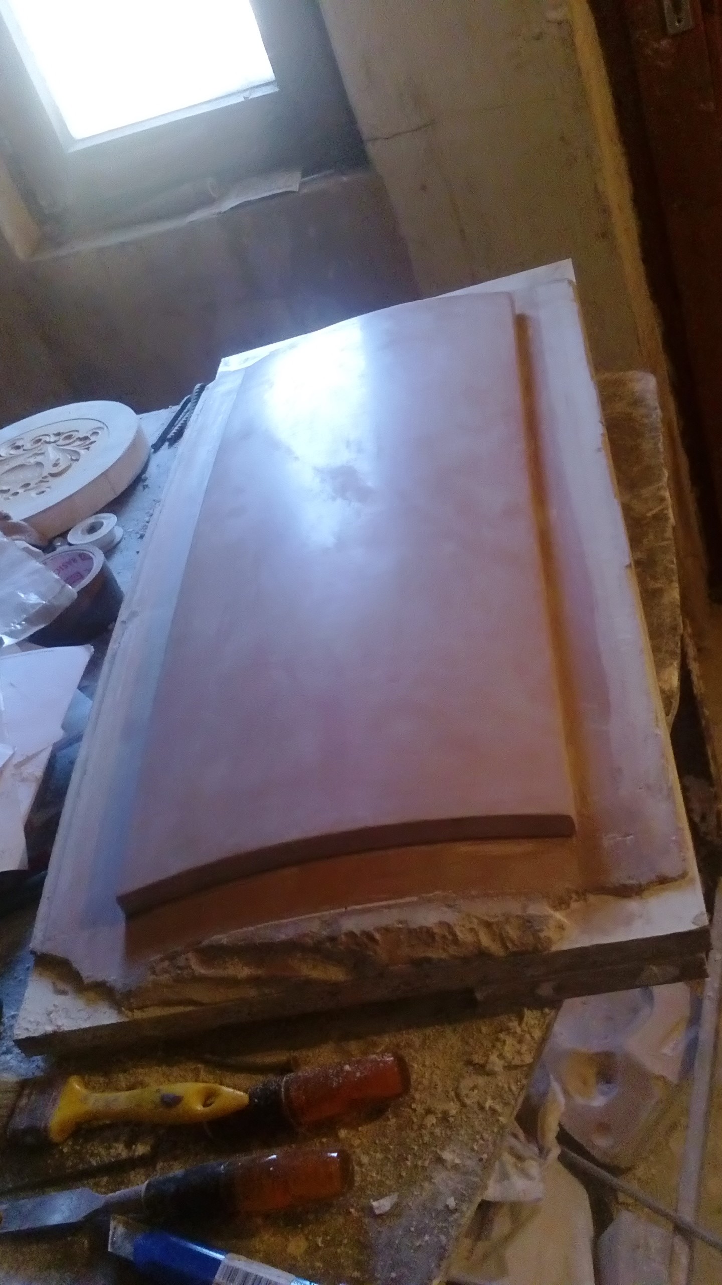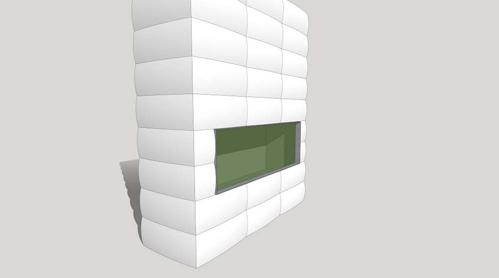 Nagy méretű íves kandallóburkolati elem (72 cmx28 cm). Néhány éve a nagyobb méretű csempék a hazai gyártók kínálatában is megjelentek, követve a külföldi trendeket. A forma elkészítésének érdekessége, hogy a csempe vízszintes és függőleges oldala is íves vonalú.